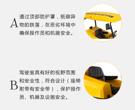 3.開闊的視野設計,原地轉彎性能,讓操作人員在狹窄的區域,或通道也可輕松地操控。